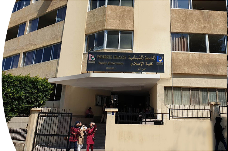 بعد تعديل تسمية "معهد الصحافة" الذي تأسس في 5 كانون الأول 1967 وأصبح كلية الإعلام والتوثيق في 24 آذار 1975، أُنشئت كلية الإعلام - الفرع الأول وكان مركزها في المصيطبة - طلعة يزبك، ثم انتقلت عام 1980 إلى منطقة الكولا قرب نقابة المهندسين، ولتحلّ عام 2006 في منطقة الأونيسكو.